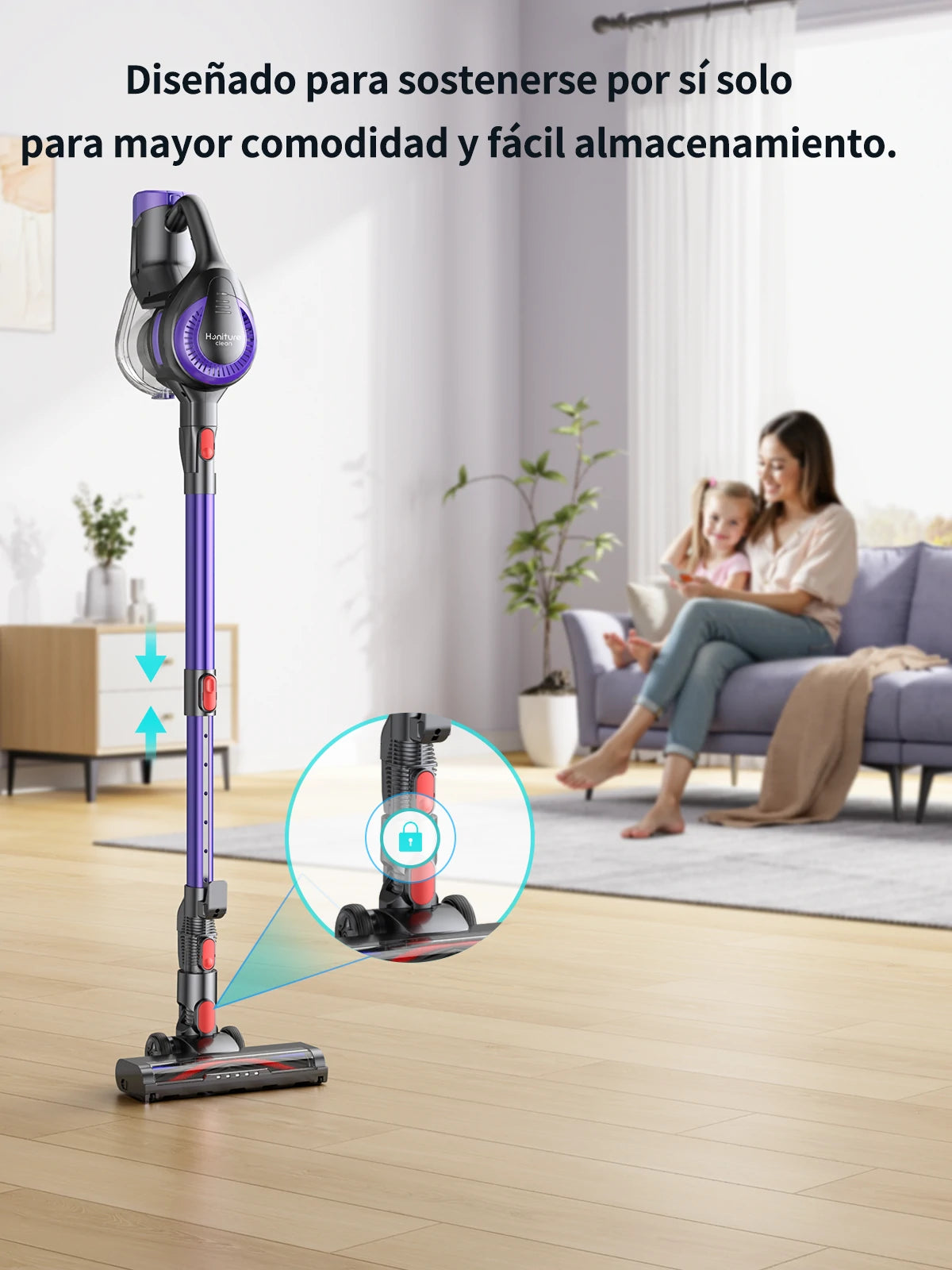 El tubo telescópico ajustable y los cepillos intercambiables permiten limpiar alfombras, sofás, ventanas y el interior del coche, en modo vertical o de mano.