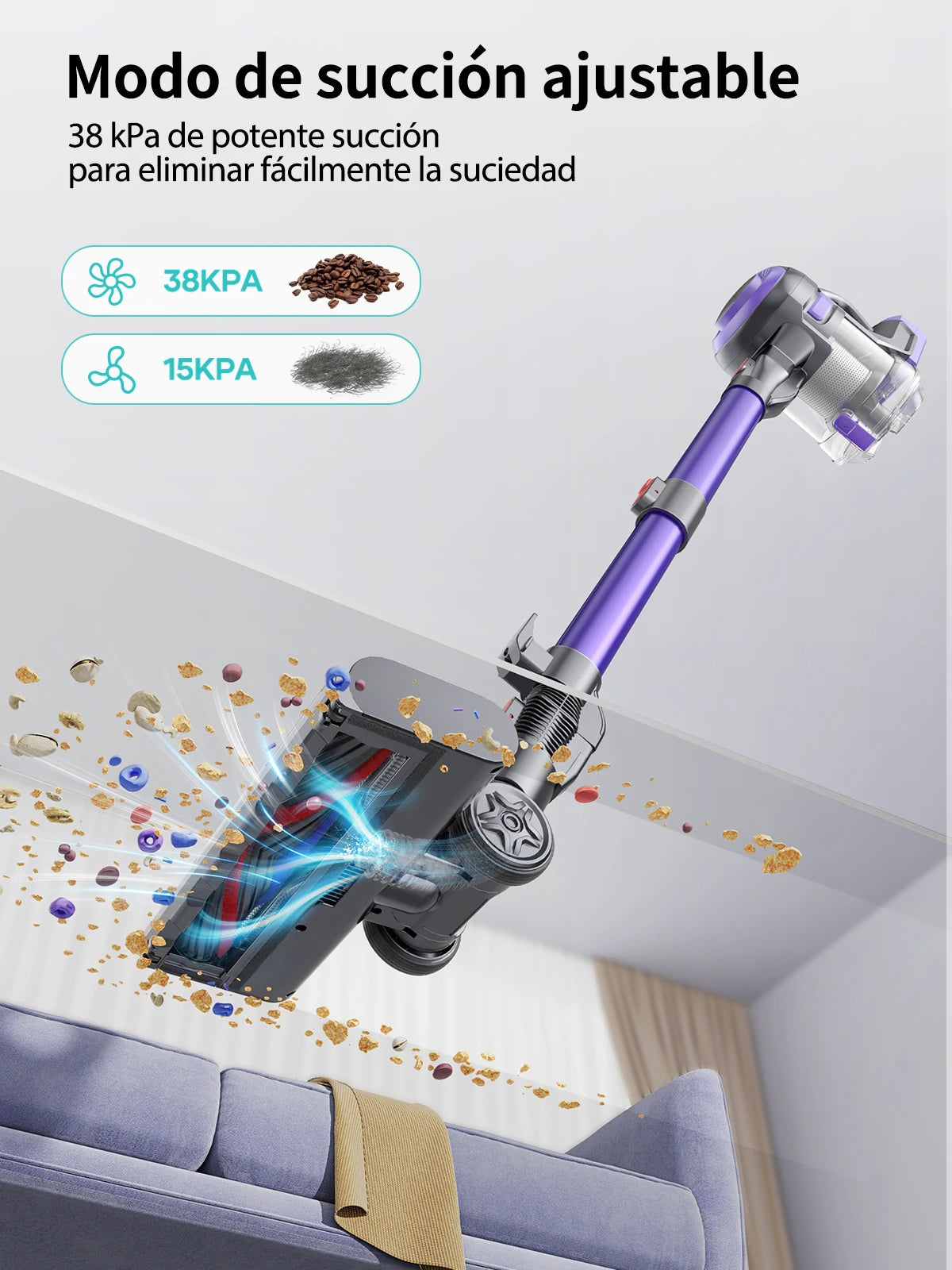 - 38 KPA de Potente Succión y 2 Modos de Trabajo